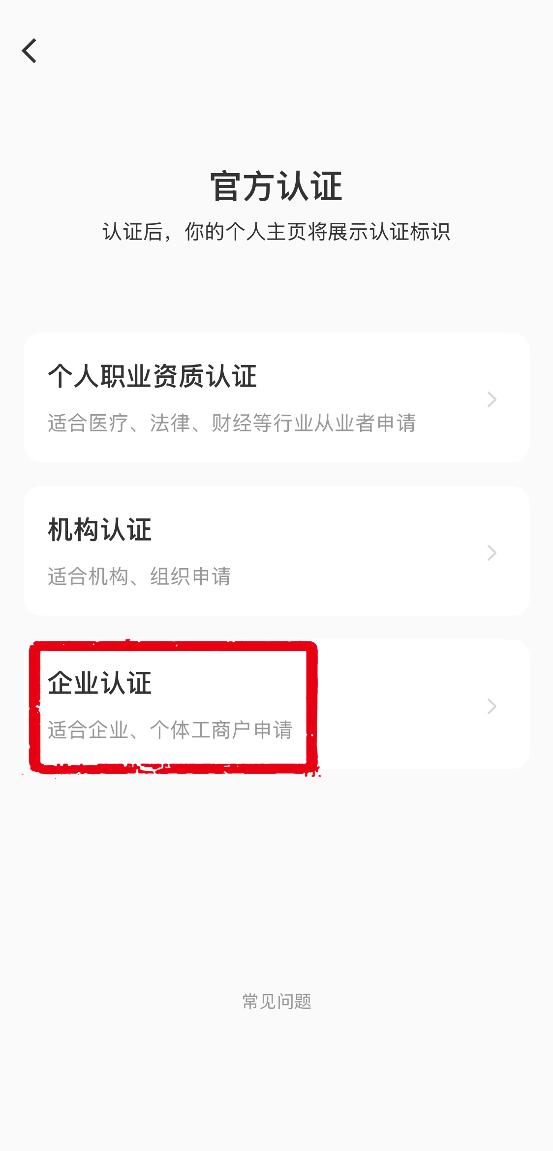 5.下段にある「企业认证(企業認証)」をタップします。